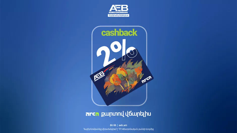 21.01.2026 | 10:14 Նորություններ 2% հետվճար՝ Հայէկոնոմբանկի Arca քարտերով անկանխիկ գործարքների դիմաց