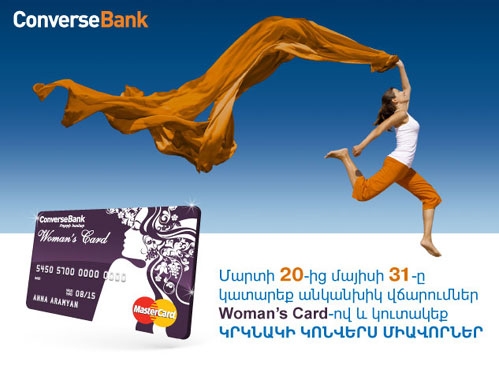 22.03.2013 | 16:23 Նորություններ Կոնվերս բանկը նոր ակցիա է սկսել WOMEN’S CARD քարտապանների համար