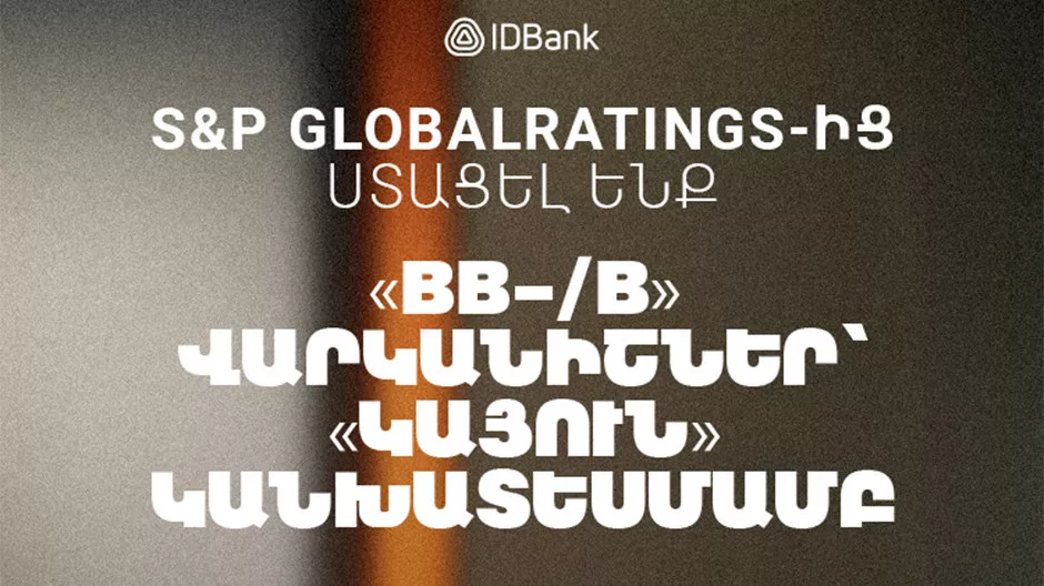 02.12.2025 | 10:10 Նորություններ S&P Global Ratings-ն ԱյԴԻ Բանկ ՓԲԸ-ին տրամադրել է «BB-» երկարաժամկետ եւ «B» կարճաժամկետ վարկանիշ