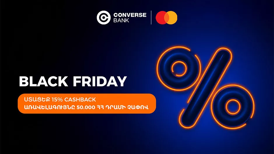 28.11.2025 | 14:33 Նորություններ Կոնվերս Բանկի նոր արշավը. մինչեւ 50.000 ՀՀ դրամ քեշբեք C360 Mastercard-ով եւ ավելին