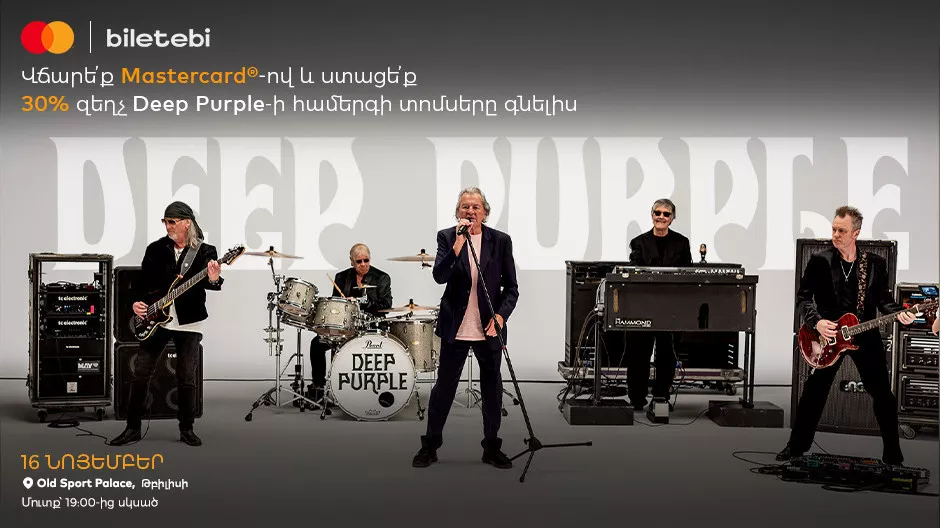 27.10.2025 | 15:00 Նորություններ Deep Purple-ը Թբիլիսիում. Mastercard-ի եւ Biletebi.ge-ի առաջարկը ՀՀ-ում Mastercard-ի քարտապանների համար