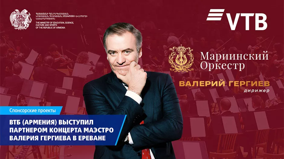 02.10.2025 | 11:43 Новости ВТБ (Армения) выступил партнером концерта маэстро Валерия Гергиева в Ереване